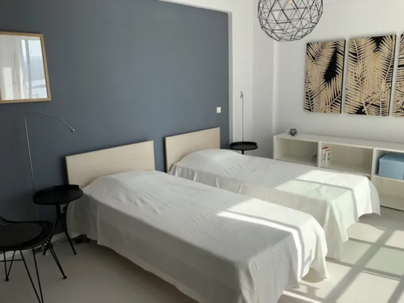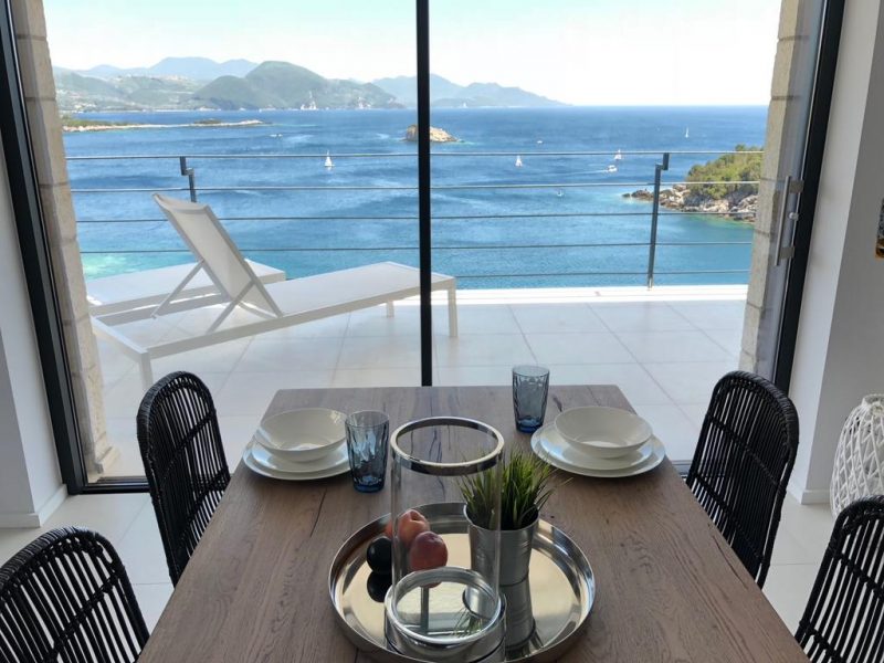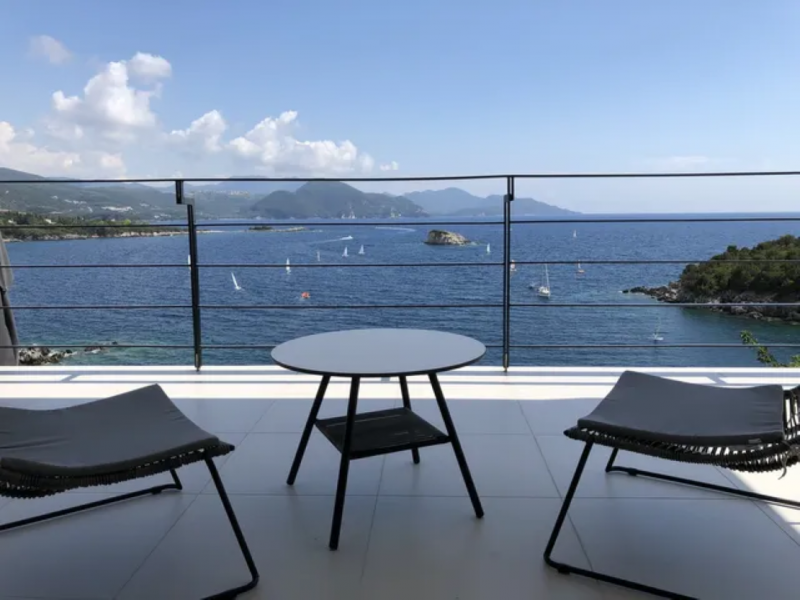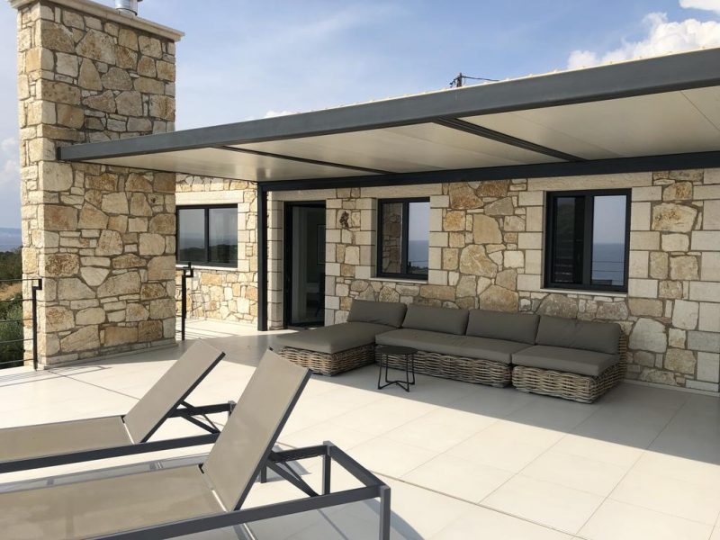 The beautiful Villa Vraka in Sivota offers enough space on 280sqm for up to 10 people. The living area extends over three levels. The lower level is an independent apartment for up to 4 people. The middle level is the living area of the upper apartment with kitchenette, dining area and 2 bedrooms. On the top level there are two bedrooms and a 71sqm roof terrace.