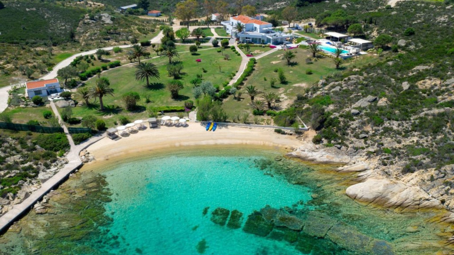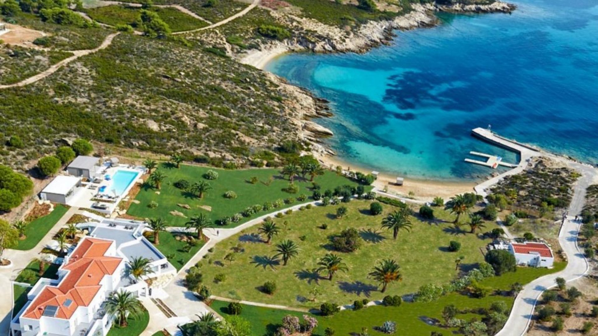 This unique property of 19.000 sqm total surface area lies in the north-eastern side of the island, between two private natural coves with calm, warm waters and a private jetty for easy access, where both big yachts and sailing boats can moor.