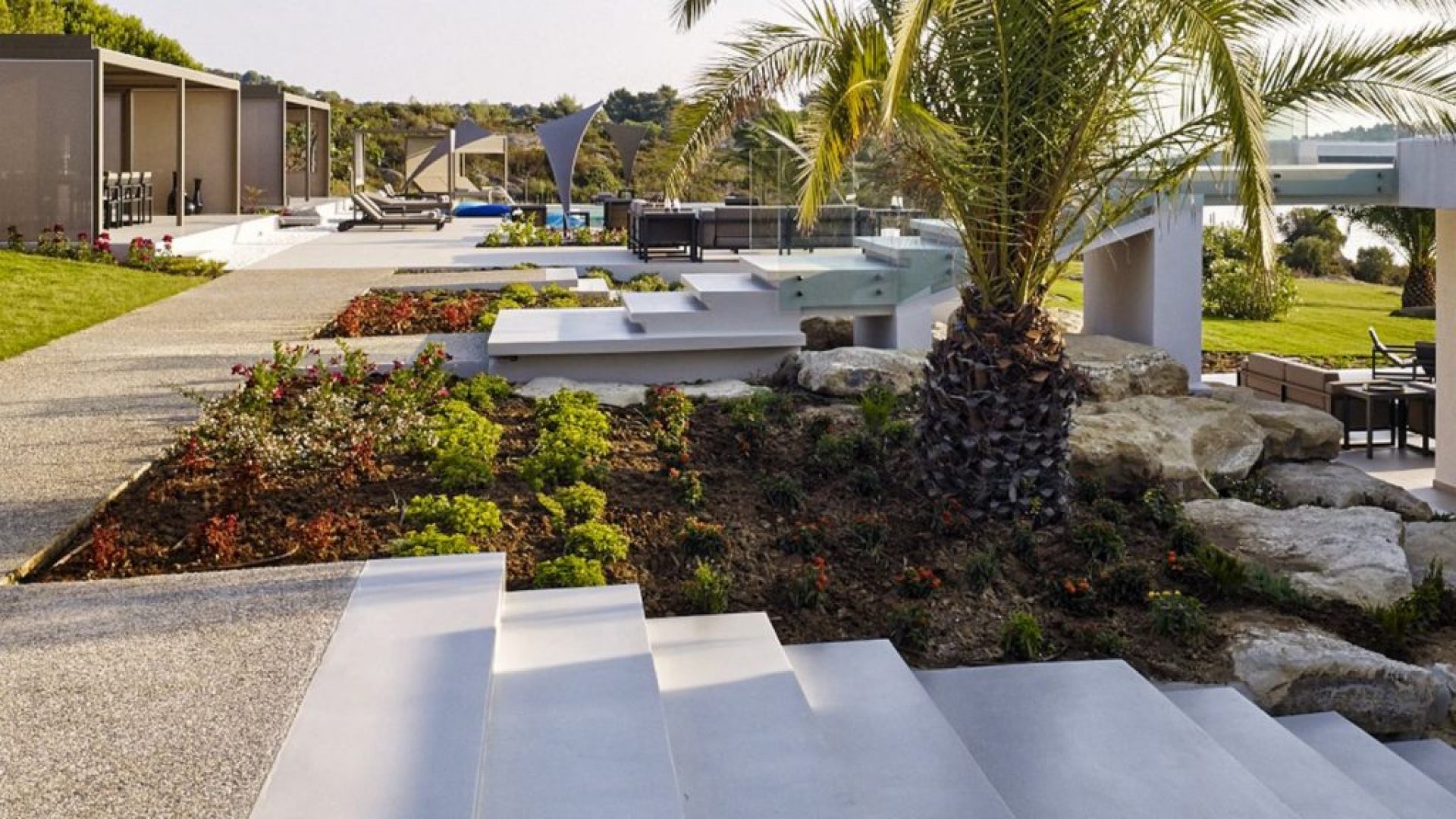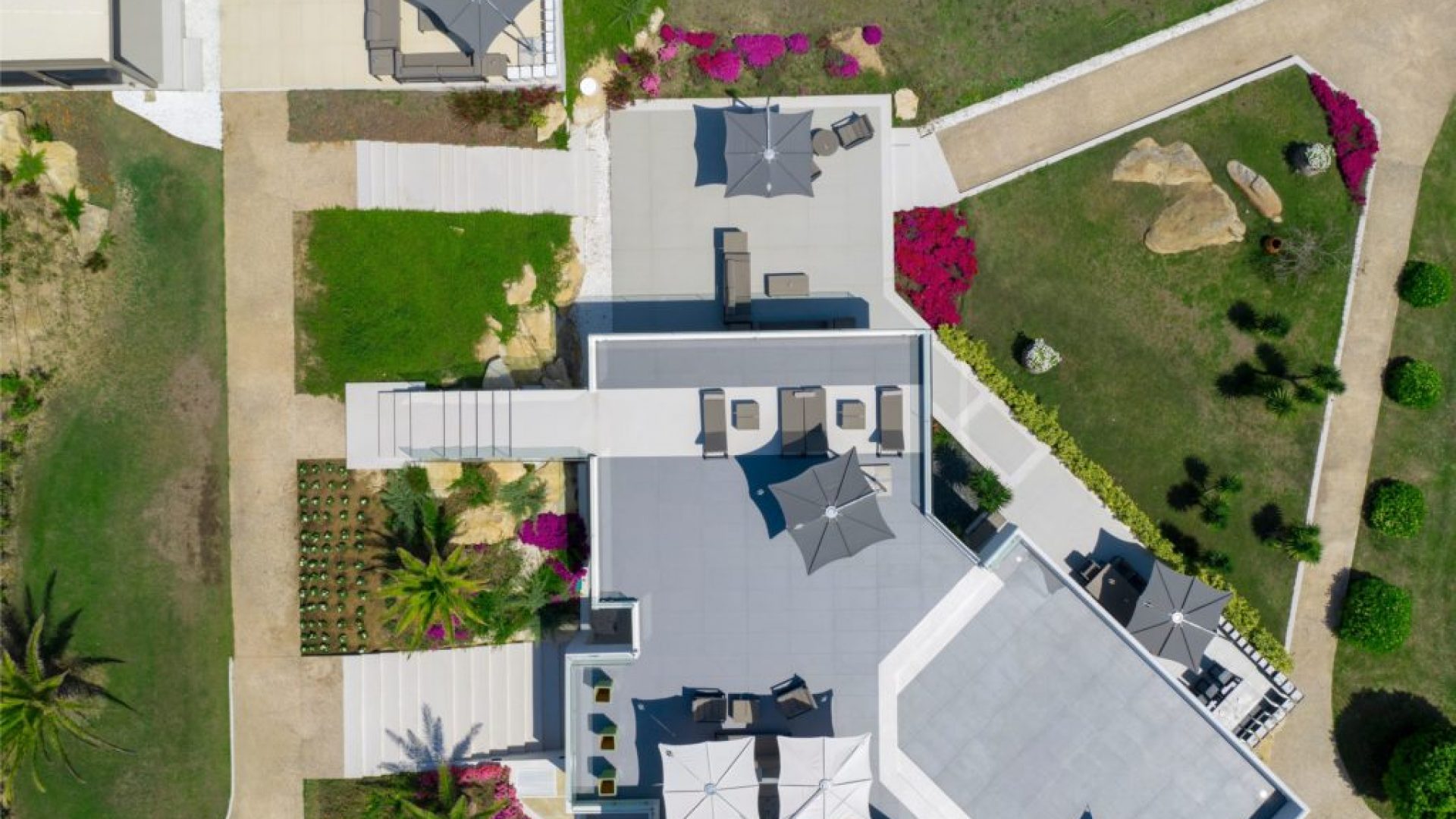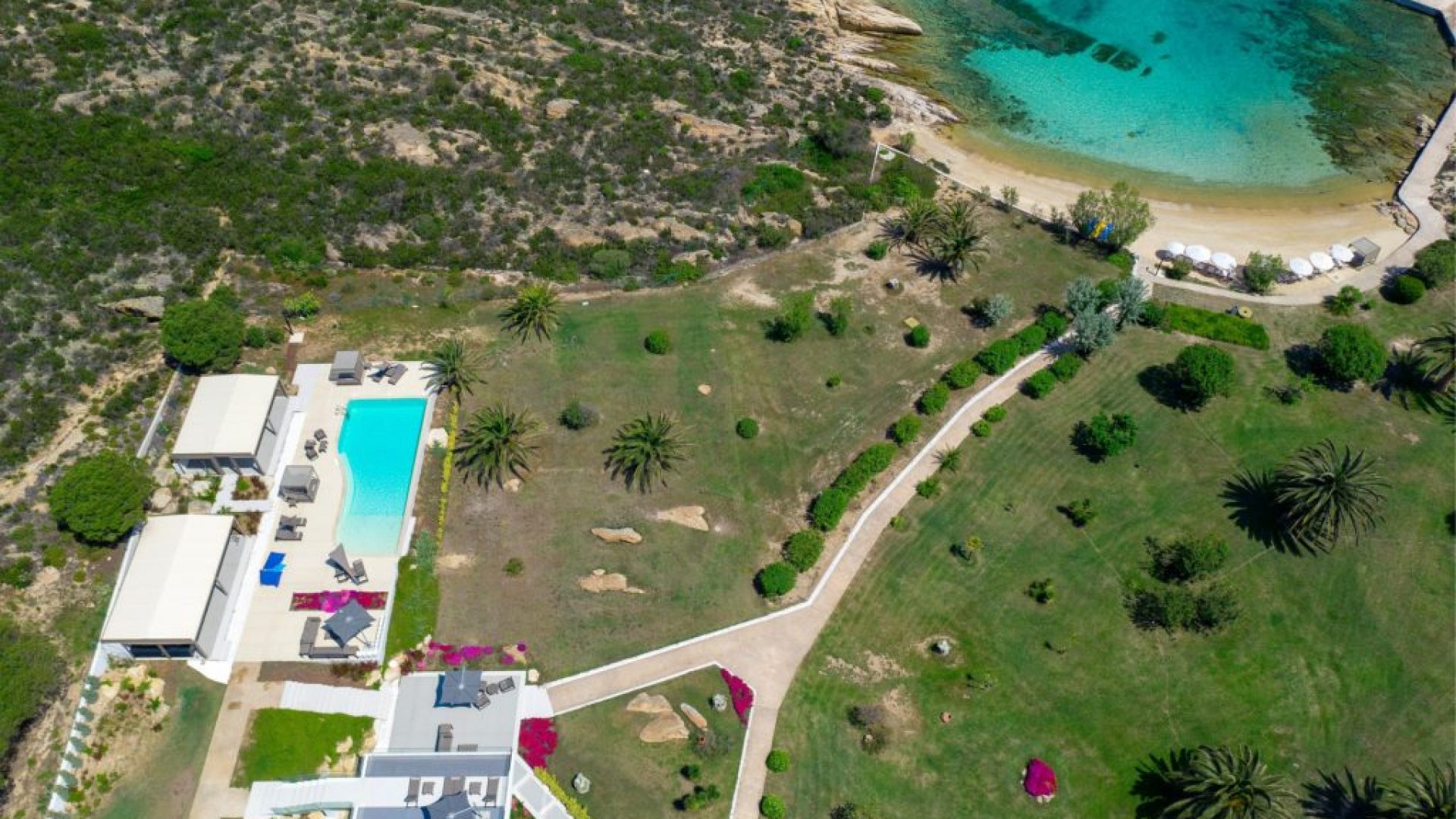 The quarters cover a total of 920 sqm, including the main villa of 820 sqm, the mini villa of 47 sqm and two independent staff houses of 53 sqm in total. Here bright white elegance is set against a luxuriant green backdrop of lawn, offering a magnificent retreat in the most superb location, welcoming up to 20 people.