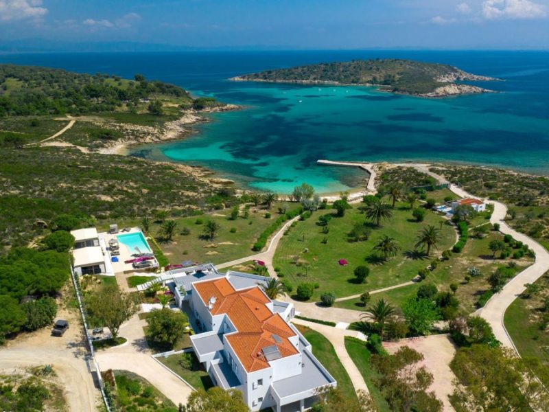This unique property of 19.000 sqm total surface area lies in the north-eastern side of the island, between two private natural coves with calm, warm waters and a private jetty for easy access, where both big yachts and sailing boats can moor.