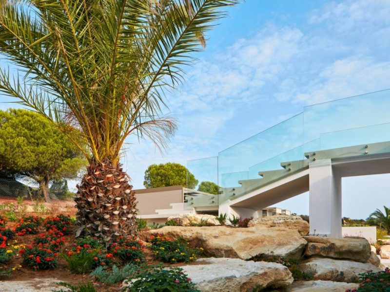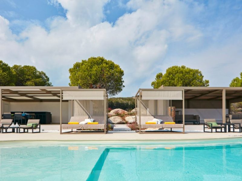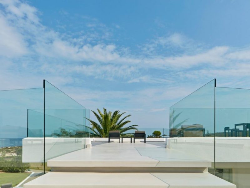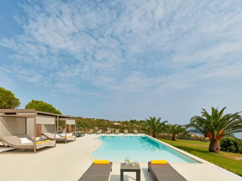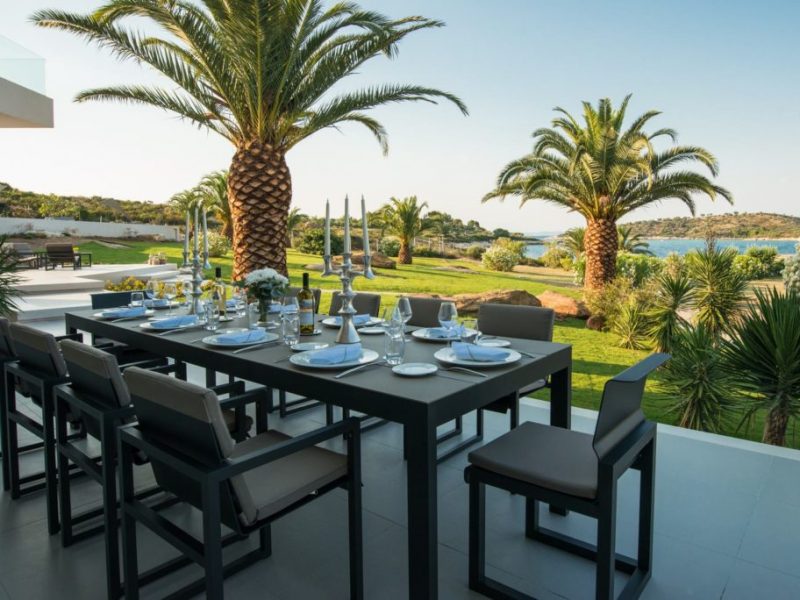 This 10-bedroom architectural jewel is located on the private and unspool island between two natural coves of crystal-clear water.
