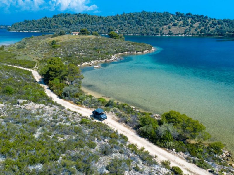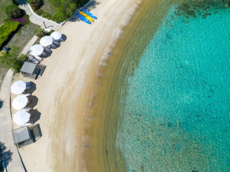 Arrival by sea reveals superb views of an undisturbed coastline, unraveling one secluded cove after another, which amaze you, while you delve into the amazing scenery. Shallow water bays, where green and rust-hued vegetation dips into aquamarine water and gently laps at sun-bleached rocks smoothed with age, are likewise open to discovery.