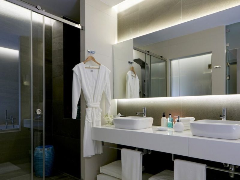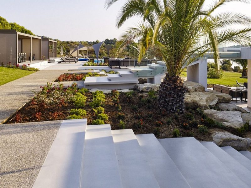 The quarters cover a total of 920 sqm, including the main villa of 820 sqm, the mini villa of 47 sqm and two independent staff houses of 53 sqm in total. Here bright white elegance is set against a luxuriant green backdrop of lawn, offering a magnificent retreat in the most superb location, welcoming up to 20 people.
