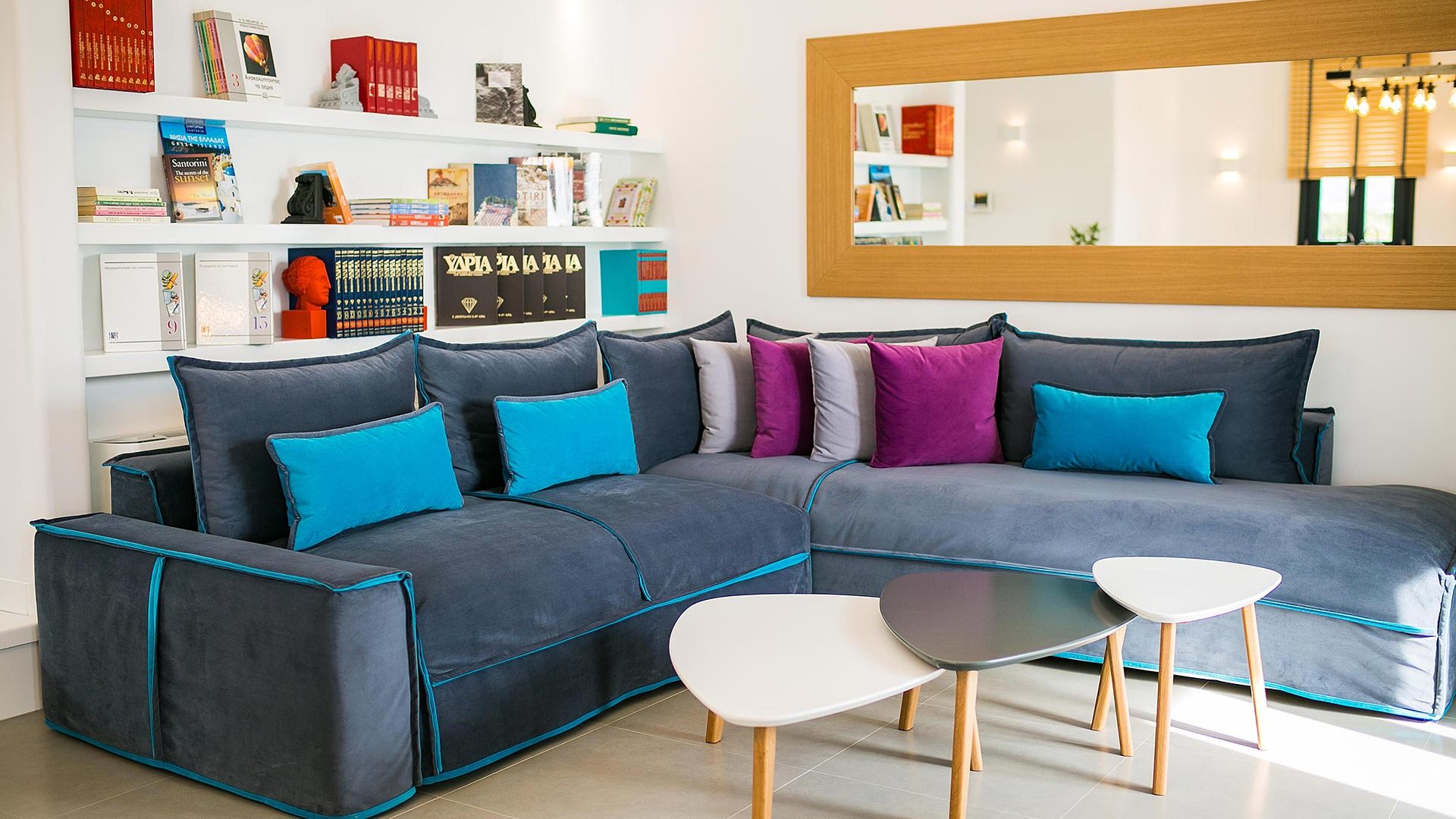 Zania Residence is surrounded by the well-known round-shaped vineyards. A lush and maintained garden which lines the outdoor spaces is composed of Mediterranean floras, such as olive trees, lavender, rosemary, thyme, oregano and aromatic herbs like basil, marjoram, mint, coriander etc.