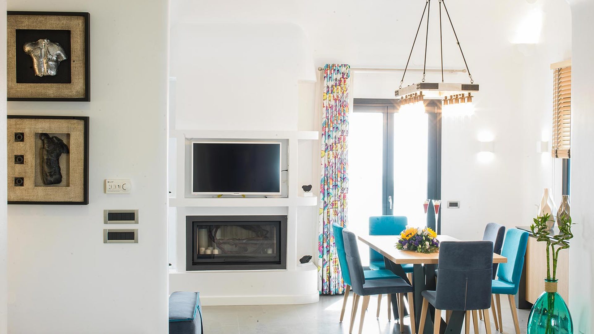 Zania Residence features an entrance with living areas and a fully equipped high technology kitchen well positioned for either indoor or outdoor entertaining. Tasteful decor showcasing refined textiles as well as iconic and handmade furniture. The villa’s grand living room with the comfortable lounge facing the fireplace, opens directly onto the formal dining area also leading to the pergola. An elegant master bedroom with en-suite bathroom and two cozy bedrooms with a shared bathroom accommodate up to six guests.